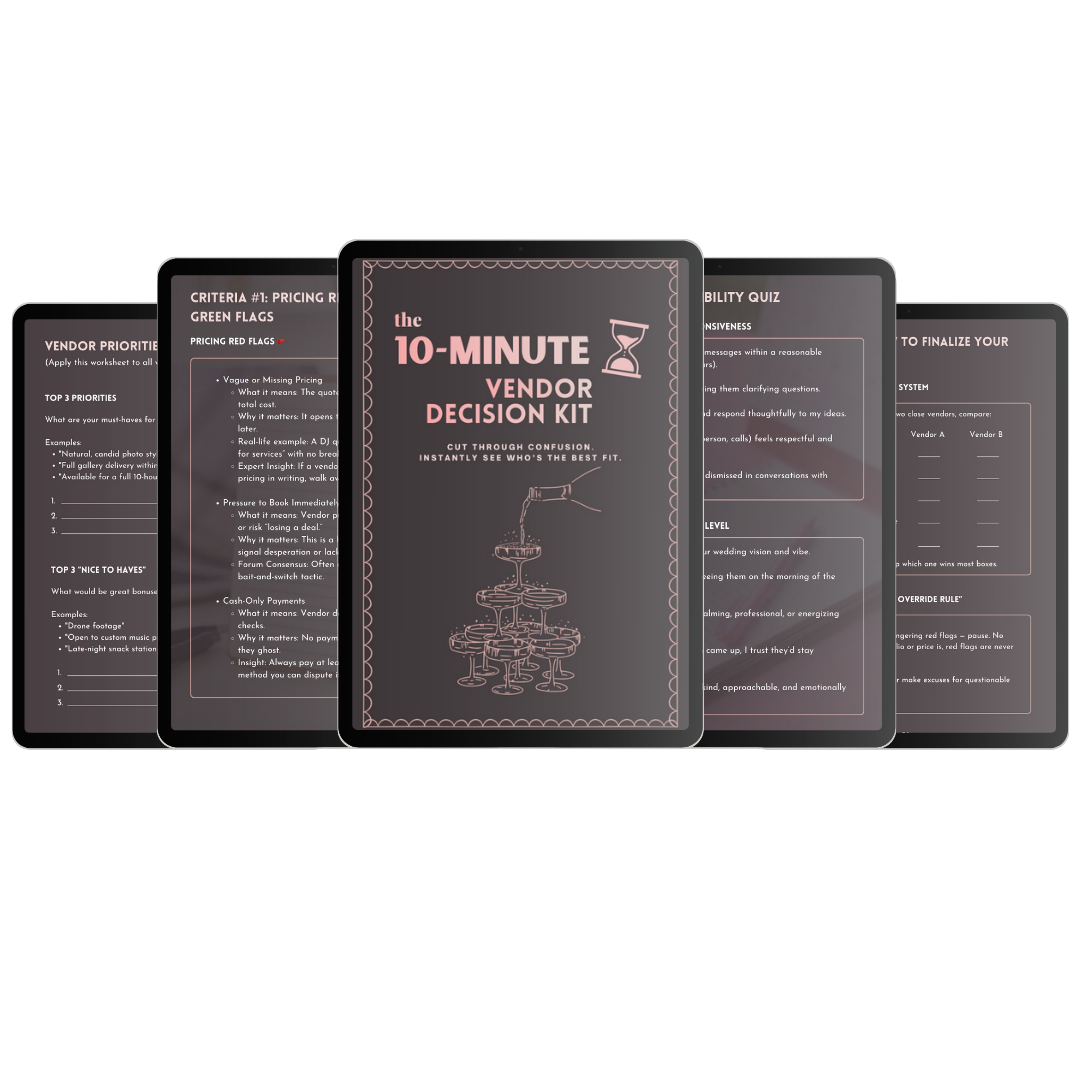 Get the 10-Minute Vendor Decision Kit now and feel confident choosing your vendors in minutes.